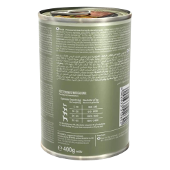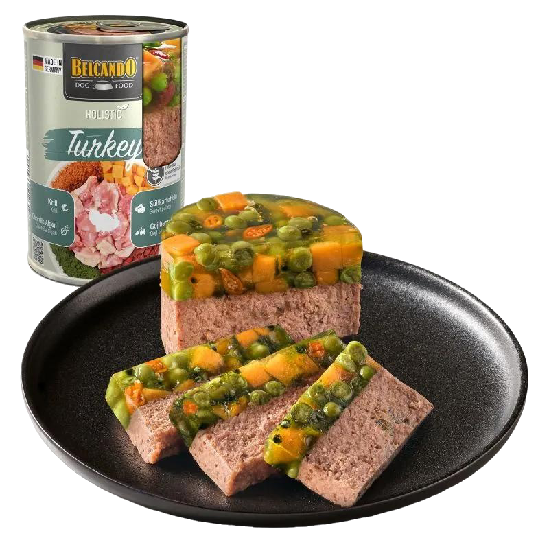Compozitie: Carne de curcan cu gaturica (35%); supa de curcan si pui (37.5%); ficat si inima de pui (18%); cartof dulce (3%); zooplancton marin – krill macinat (2.4%); mazare (2%); minerale (1.1%); fructe goji uscate (0.5%); coji de ou uscate (0.3%); alge uscate (Chlorella vulgaris) (0.2%).