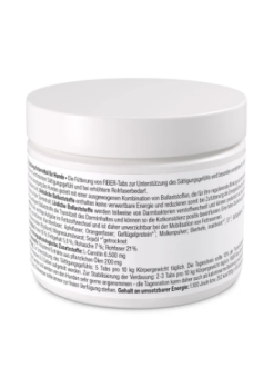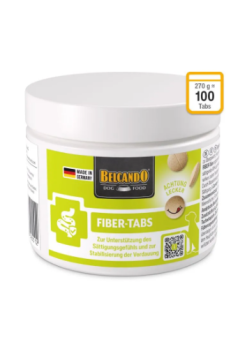 FIBER-Tabs este un supliment alimentar conceput pentru a completa dieta cainilor cu o combinatie echilibrata de fibre, recunoscute pentru efectul lor de reglare a digestiei si pentru promovarea senzatiei de satietate.