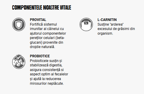 Pentru câini adulți, seniori sau cu activitate scăzută;