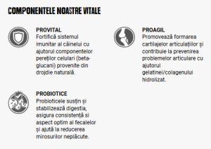 80% proteină animală din total proteină (60% pasăre extra proaspătă, 15% pește, 5% gelatină)
