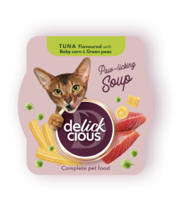 Delickcious Pisica Plic Supa Ton Cu Porumb Si Mazare Verde 80 g