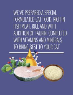 Pe lângă carnea care este primul ingredient, conține orez ca sursă de carbohidrați sănătoși și taurină pentru prevenirea afecțiunilor creierului, ochilor și inimii.