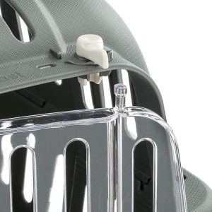 Forma rotunjita a custii ofera un nivel ridicat de confort pentru animal, contribuind la reducerea stresului in timpul calatoriilor. Grilele mari de ventilatie amplasate pe acoperis si pe peretii laterali asigura o aerisire optima, in timp ce usa transparenta, rezistenta la impact, permite vizibilitatea completa a animalului si este prevazuta cu orificii suplimentare pentru ventilatie.