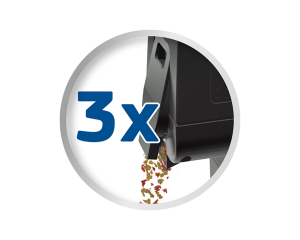Cantitatea de hrana poate fi programata sa fie distribuita pe oricare dintre cele 8 niveluri disponibile, asigurand control precis al portiilor si prevenind supraalimentarea.