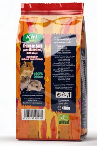 Kiri Kiri Meniu Hamster este o hrana completa pentru hamsteri si alte specii de rozatoare mici, preparata din ingrediente naturale, fara conservanti. Amestecul gustos este adaptat nevoilor nutritionale specifice, sustinand sanatatea si vitalitatea zilnica.