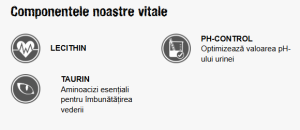 vitamina A 15.000 UI; vitamina D3 1.500 UI; vitamina E 150 mg; taurină 1.400 mg; cupru (sub formă de sulfat de cupru (II) pentahidrat) 15 mg; fier (sub sulfat de fier (II) monohidrat) 200 mg; mangan (sub formă de oxid (II) manganos) 50 mg; zinc (sub formă de oxid de zinc) 125 mg; iod (sub formă de iodat de calciu anhidru) 2,5 mg; seleniu (sub formă de selenit de sodiu) 0,05 mg