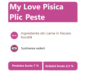 Conținut ridicat de carne (76%), peste în proporţie de 4% ;