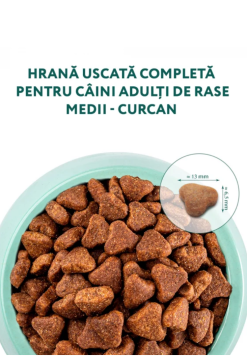 Compozitie: proteine deshidratate de curcan, cel puţin 30 %, porumb, orez, grăsime de pasare,