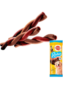 Pedigree Rodeo este o gustare ideala pentru momentele de rasfat sau pentru a recompensa comportamentul bun al cainelui tau.