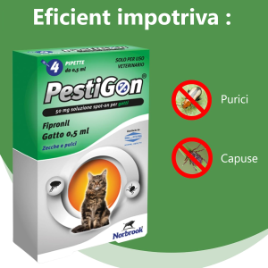 Pipetele Pestigon ofera o protectie eficienta si constanta impotriva puricilor si capuselor. Formula asigura o distributie uniforma pe pielea pisicii si un efect insecticid de durata, pentru o aparare completa.