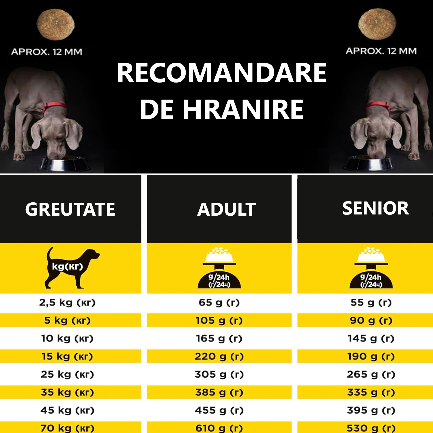 IU/kg: Vitamina A: 37000; Vitamina D3: 1200; Vit E: 600;
