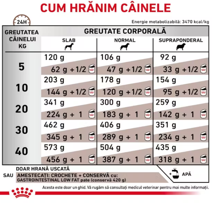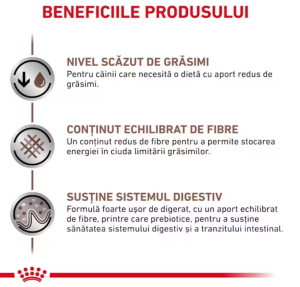 Royal Canin Gastrointestinal Low Fat este o hrană dietetică completă, concepută special pentru câinii adulți cu afecțiuni digestive care necesită un aport redus de grăsimi. Este ideală pentru gestionarea tulburărilor gastrointestinale precum pancreatita, hiperlipidemia, limfangiectazia sau diareea cronică, unde grăsimile alimentare trebuie strict controlate.