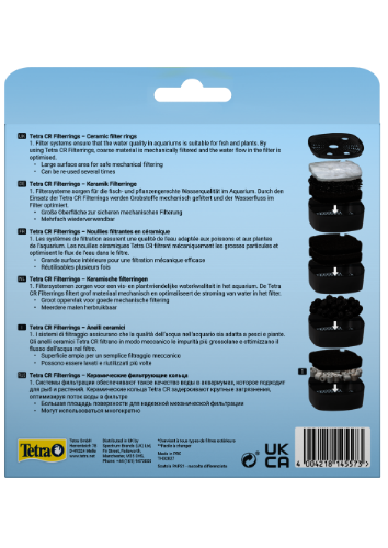 Realizate din ceramica goala de inalta calitate, inelele Tetra CR sunt compatibile cu toate filtrele externe si pot fi reutilizate de mai multe ori, reprezentand o solutie practica si rentabila pentru pasionatii de acvaristica.